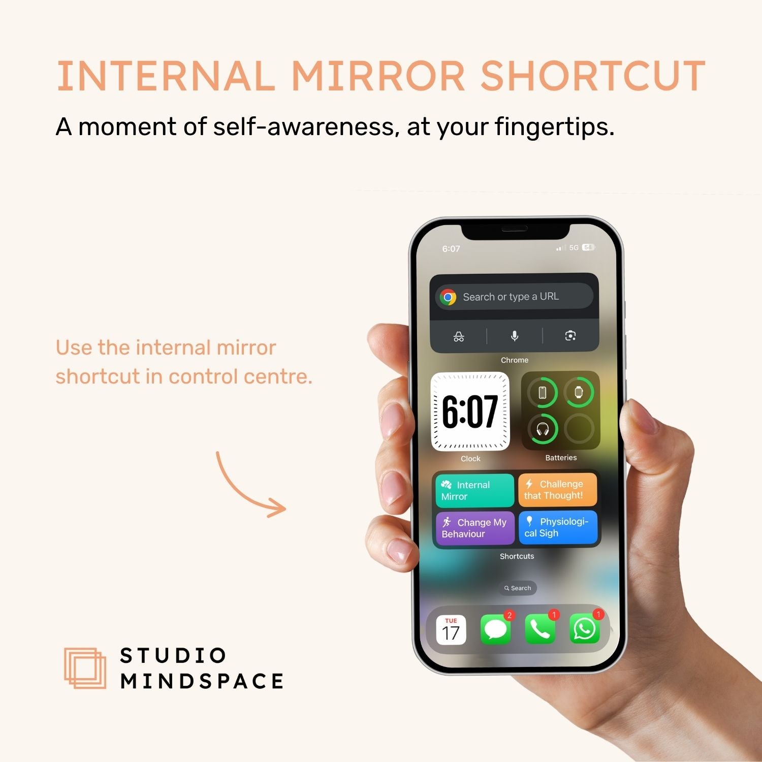 Buy NowThe Internal Mirror is a guided digital tool designed to help you pause, reflect, and reconnect with your internal experience. Grounded in executive function theory and developed by clinical psychologists, it uses three simple prompts to support emotional regulation, build self-awareness, and reduce overwhelm. Best used with the Apple Shortcuts app, it includes step-by-step setup instructions and a streamlined method to organise your reflections in Apple Notes.