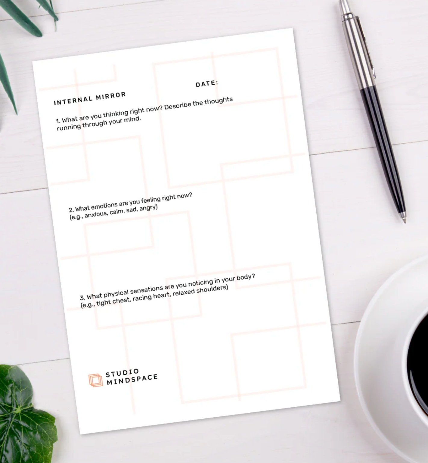 The Internal Mirror Notepad is a compact, desk-friendly tool for daily self-reflection. Grounded in executive function theory and CBT-informed practice, it helps you check in with your thoughts, emotions, and physical state throughout the day.